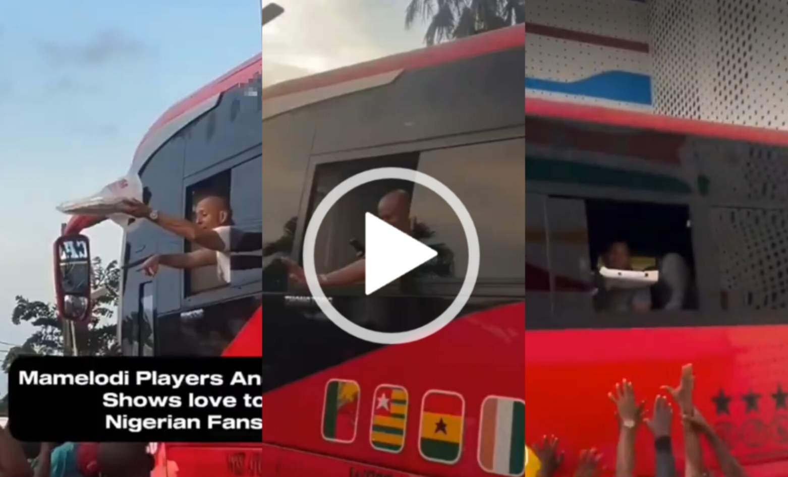 A video has emerged showing the moment players of Mamelodi Sundowns of South Africa shared food to Nigerian at Lagos traffic.